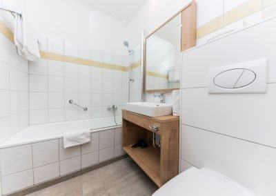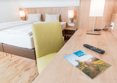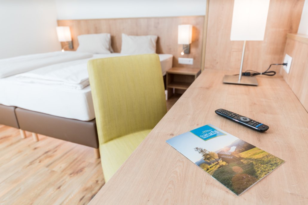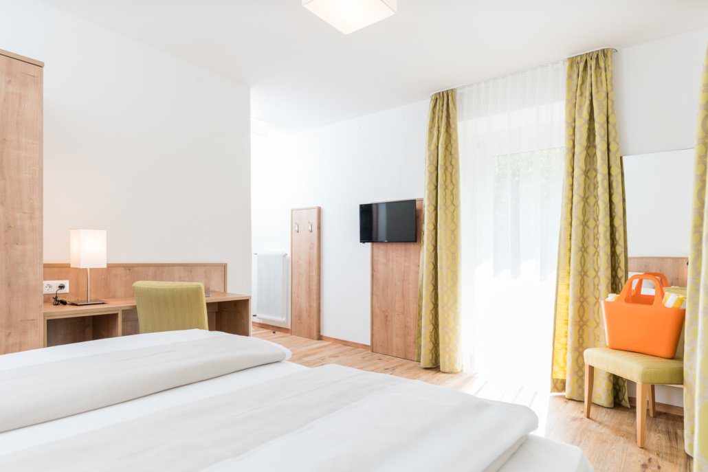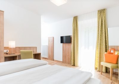 Nasz pokój dwuosobowy„Goldeck” o powierzchni 29 m² oferuje dużo miejsca, aby czuć się dobrze: nowocześnie odnowiony, stylowo urządzony i z balkonem na słoneczne przerwy. Wyposażony w telewizję satelitarną, radio i przytulną część wypoczynkową, nie pozostawia nic do życzenia. Idealny dla rodzin z małymi dziećmi - dzięki możliwości 1-2 dostawek.